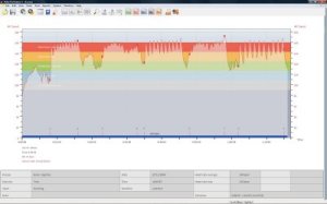 Santa just has to bring me one of these heart rate monitors, here’s the HRM data from yesterday’s session. The session was 75 minutes in total which produced the following graph of stress on my poor heart. By the way, you can click on this to get it full screen.