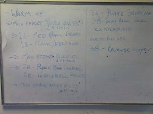 So that’s the future, here’s the very recent past. Today we did some conditioning followed by some sparring. Here was the set-up: