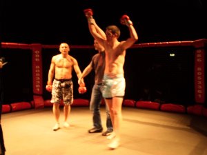 Gordy sent me some the photos of the fight in Galway and they’re hilarious. He was too busy cornering to get any action shots but he got some of the following in which I mostly look like a moron. Have a laugh at these.
