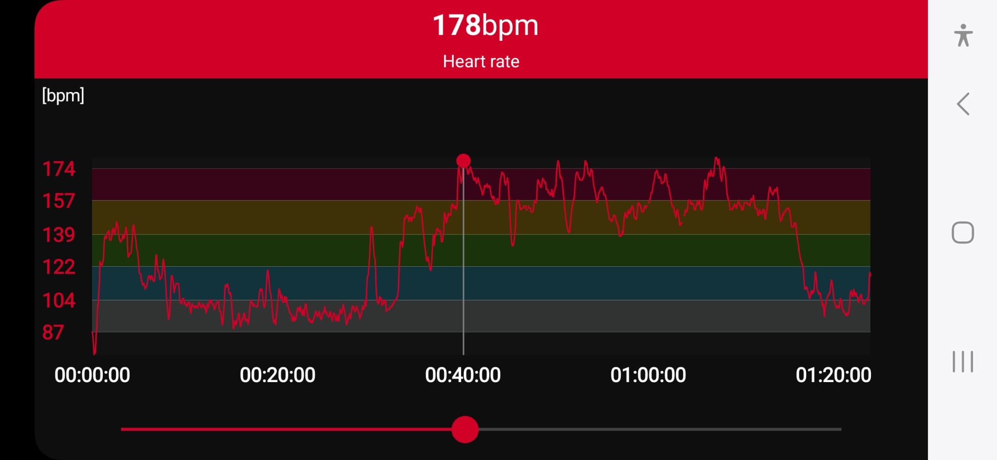 You’re entitled to be surprised, but I can’t imagine it being that high in reality. However the session was tough. You can see on the timescale where my warm up was, when I was teaching technique (the drop off between 10 and 30 mins), and then the beginning of the spars.