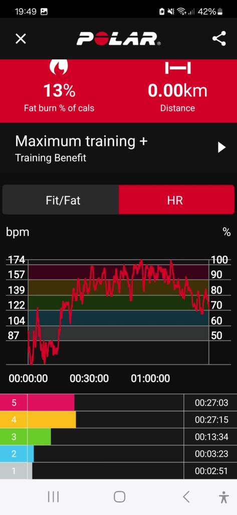 My new Polar Verity is amazing. Under the armpit, no catches to release, unintrusive. It gives great data with no signal drop. You can see the data below and then I’ll explain the session.