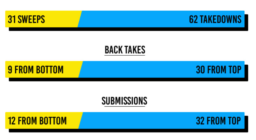 Here’s the data from ADCC, taken from BJJ Heroes. Keep in mind these are the ELITES of our sport.